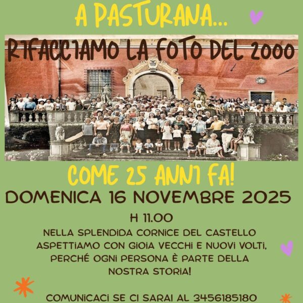 Foto di gruppo delle persone residenti a Pasturana nel giardino del castello Gavotti gentilmente messo a disposizione da parte dei proprietari. L’iniziativa, che si terrà domenica 16 novembre alle 11, ne riprende un’analoga dell’anno Duemila ed è organizzata dalla Pro Loco di Pasturana con la quale hanno collaborato l’amministrazione comunale del paese e la Società operaia di mutuo soccorso.