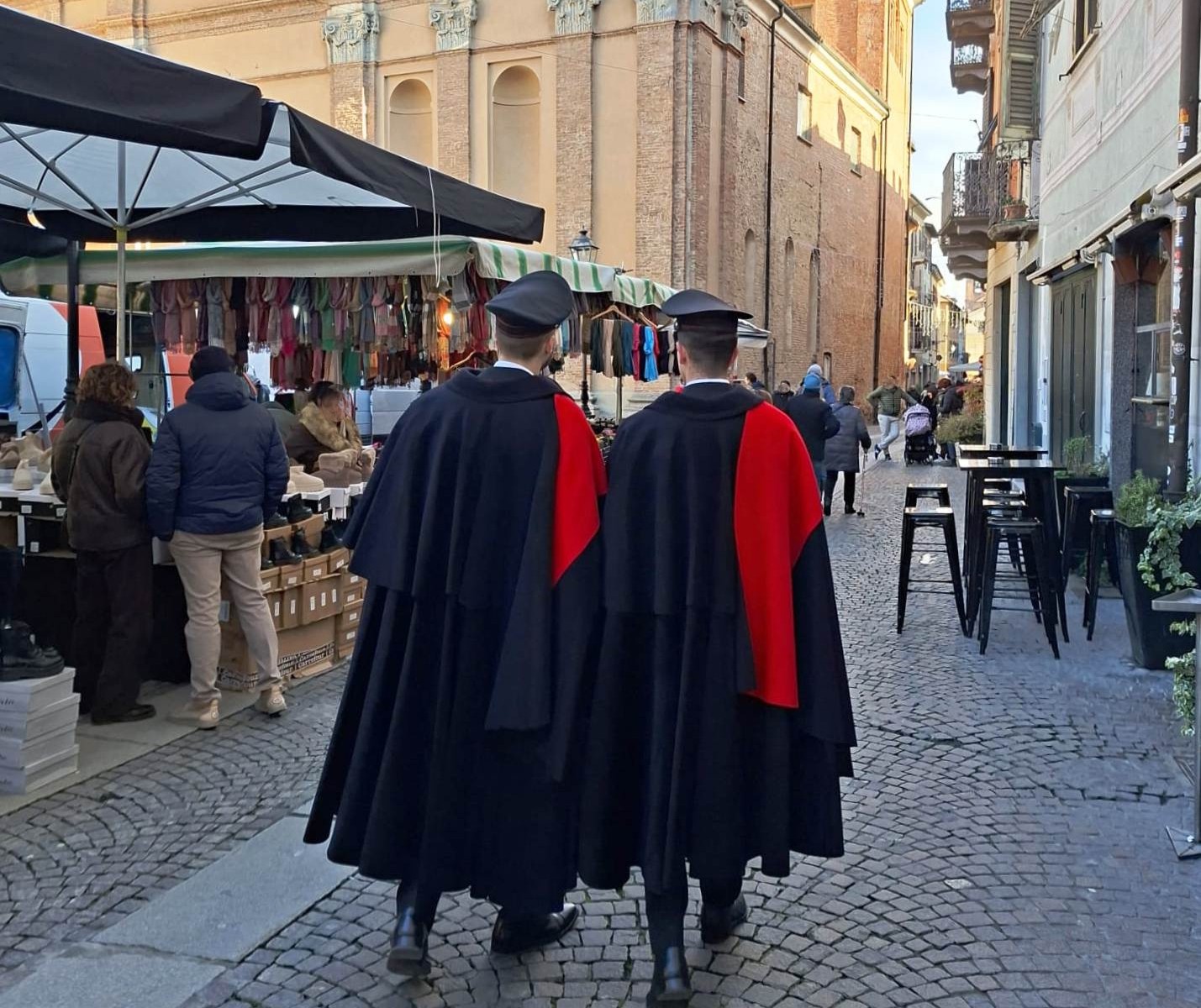 A vigilare lungo tutto il percorso, i Carabinieri della locale Compagnia, che per l’occasione vestono l’uniforme invernale con mantello. Occasione per condividere la testimonianza del servizio durante la festa con la cittadinanza e scattare qualche foto ricordo con i Carabinieri.