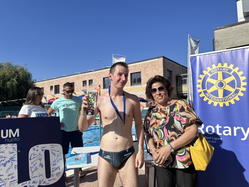 Con l’occasione il Rotary Club di Novi Ligure ha consegnato 2mila Euro a sostegno di progetto innovativo “Corriamo e nuotiamo insieme”, dove ragazze e ragazzi con autismo frequentano allenamenti di atletica e di nuoto sotto la supervisione di Massimiliano D’Este.